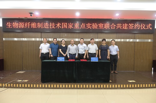 姜俊华和路福平签订了《生物源纤维制造技术国家重点实验室联合共建协议》。在签约仪式后,姜俊华为天津科技大学副校长程博闻颁发生物源纤维制造技术国家重点实验室主任聘书。